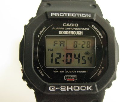 ■商品説明→G?shock×グッドイナフ DW5600 新品。時しらずの7周年を記念したGOODENOUGHとG-SHOCKのコラボ。スクエアフェイスをベースに5400や5700モデルに採用されているラウンドフェイスをミックス。 G-SHOCKのタフなイメージとGOODENOUGHのストリート感を併せ持ち、バックライトには「グラムg」、盤面裏面にはGOODENOUGHと時しらずの刻印あり。ステッカー付。■取扱アイテム■ ヘッドポーター(HEADPORTER)、ポーター(PORTER,コラボ)、ガルシアマルケス、ベアブリック、GSHOCK(カシオ)、BEAMS(ビームス、APEなど。人気のヘッド